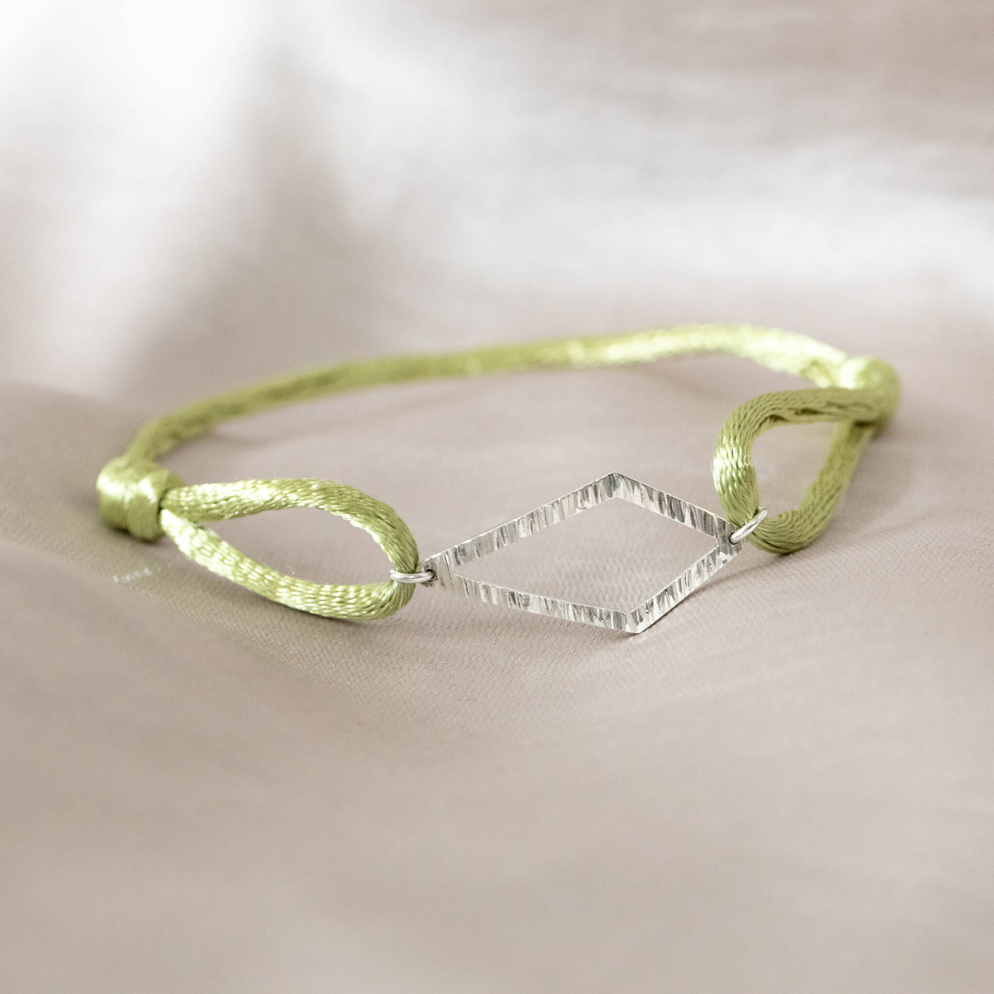 Deze handgemaakte armband is subtiel, stijlvol en uniek! Kies zelf een kleur satijnkoord en Anouk gaat voor je aan de slag. Geschikt voor iedere dag, maar ook feestelijk om te dragen bij een feestje of een ander bijzonder moment.