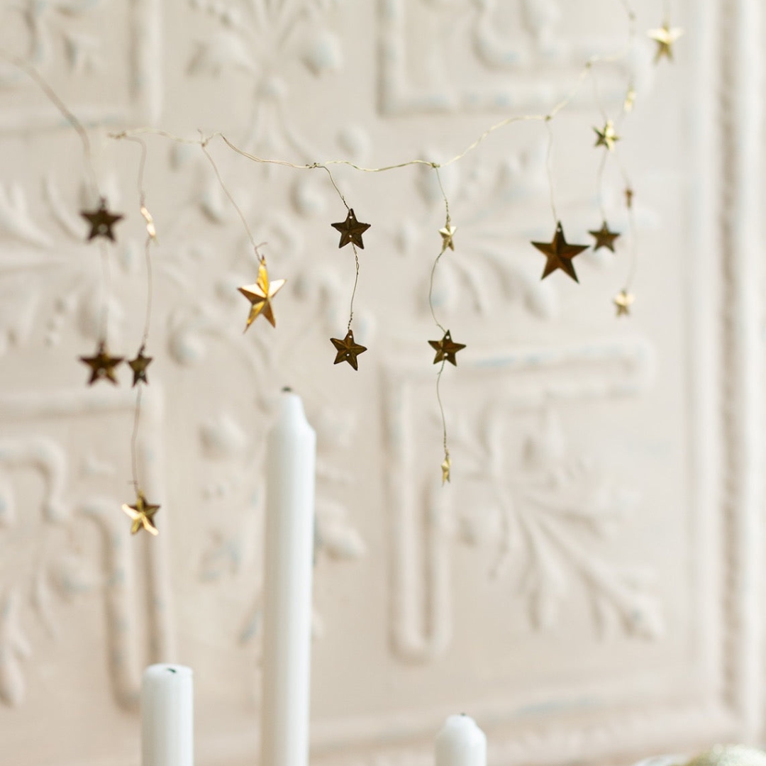 Deze slinger met kleine sterren creëert een prachtige sfeer in je huis. De slinger bestaat uit verschillende kleine goudkleurige sterretjes, die het licht op een subtiele sprankelende manier reflecteren.