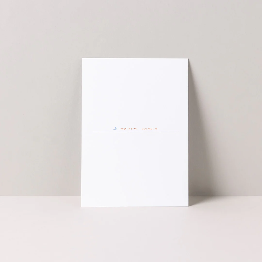 • Het kaartje is gedrukt op 100% gerecycled, stevig en mat 300-grams papier.