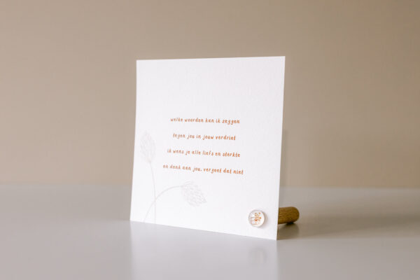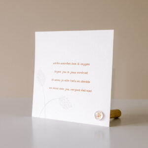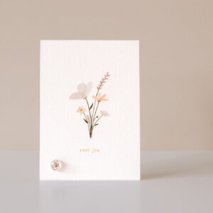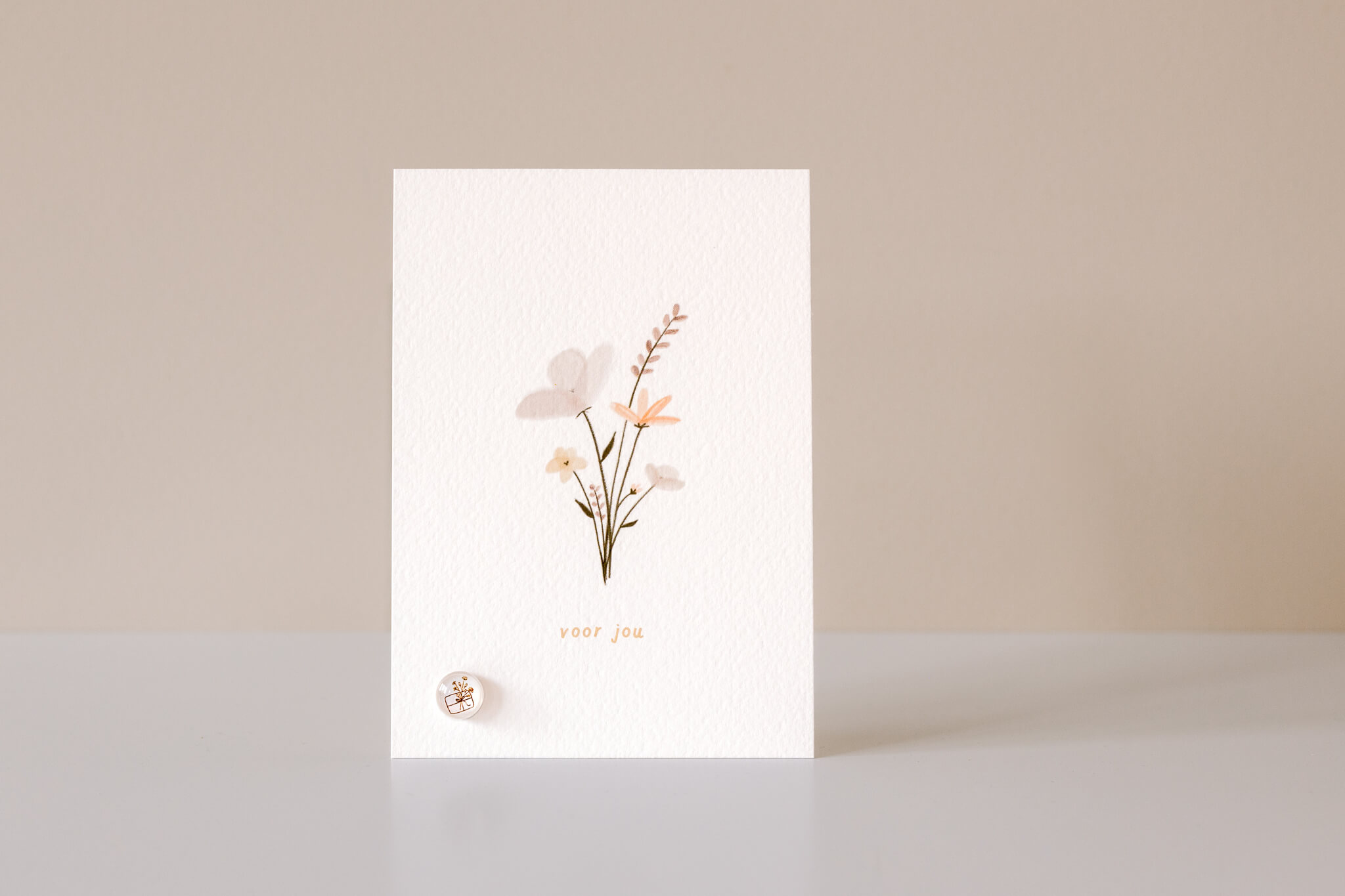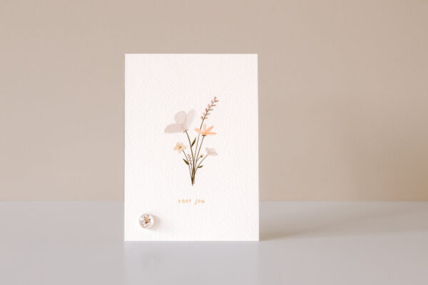 - Voeg ook een kaart toe uit onze webshop, dan schrijven wij daarop jouw persoonlijke boodschap. Voeg je geen kaart toe, dan gebruiken we een klein blanco kaartje.