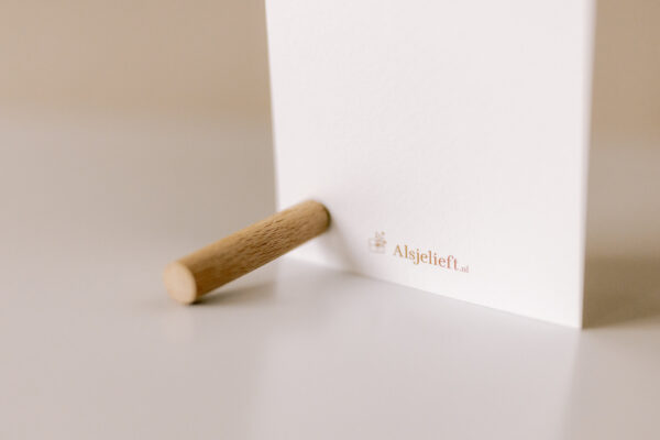 Zoek je een origineel cadeau of een stijlvolle manier om je mooiste kaarten of foto’s neer te zetten? Deze Alsjelieft-kaartpin is een handgemaakte fotohouder van FSC® beukenhout, ontworpen en vervaardigd in Nederland door vader en dochter (High5Wood).