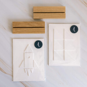 Echt vakwerk! En leuk om te weten: deze houders worden (net als de eikenhouten lijsten om de grotere kunstwerken) gemaakt door Pieter, de man van Aniek.
