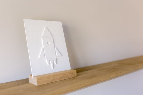 Echt vakwerk! En leuk om te weten: deze houders worden (net als de eikenhouten lijsten om de grotere kunstwerken) gemaakt door Pieter, de man van Aniek.