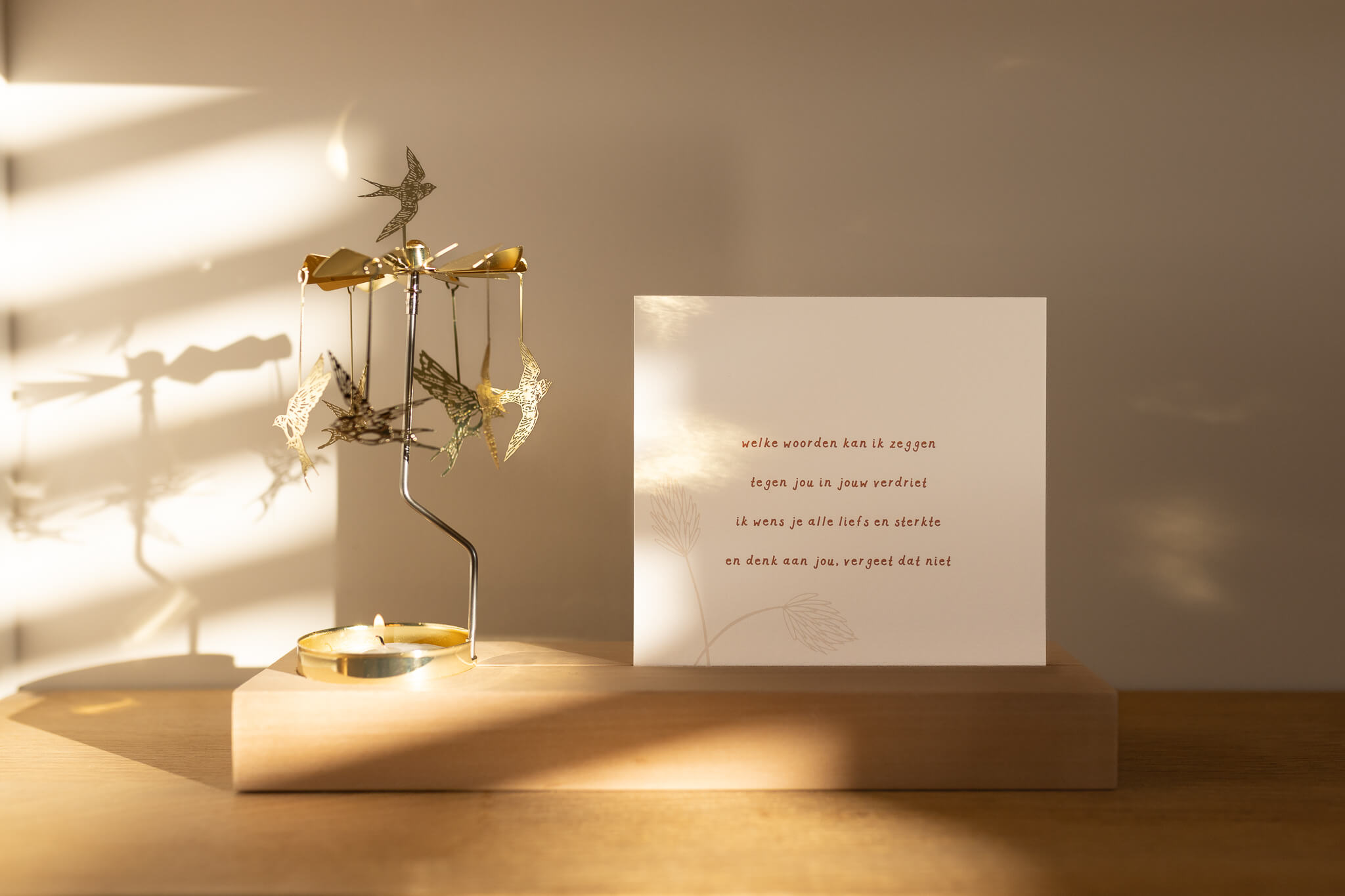 Troostpakket Alle liefs en sterkte – Lichtpuntje met houder en kaart
